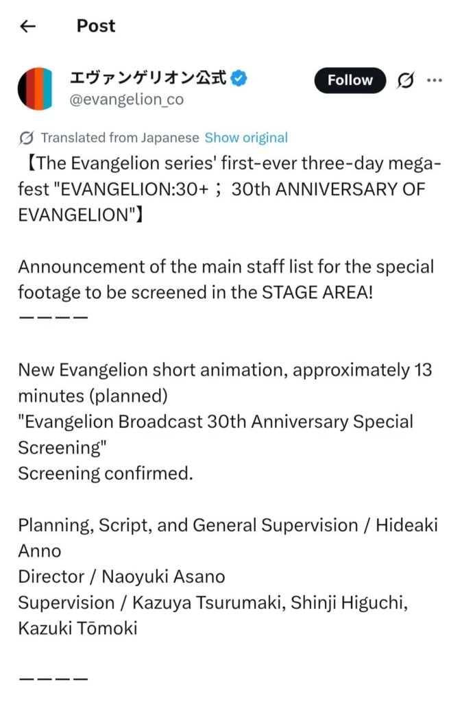 Το Neon Genesis Evangelion γιορτάζει φέτος τα τριάντα του χρόνια με μια σειρά από μοναδικές εκδηλώσεις, ανάμεσα στις οποίες ξεχωρίζει η ανακοίνωση μιας νέας ταινίας που θα προβληθεί αποκλειστικά στο πλαίσιο του Eva Fest 2026.