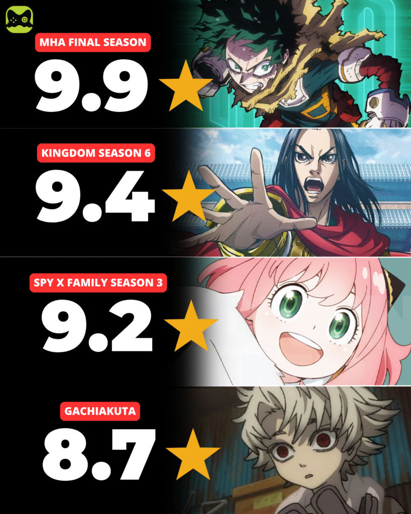Το My Hero Academia, το Kingdom, το Spy x Family και το Gachiakuta βρέθηκαν στις πρώτες θέσεις των trending charts, ενώ σειρές όπως το One Piece συνέχισαν να καταγράφουν σταθερά υψηλές βαθμολογίες, παρά τις μικρές διακυμάνσεις από επεισόδιο σε επεισόδιο.