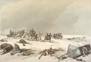 Το καλοκαίρι του 1812, ο Ναπολέων συγκέντρωσε έως και 600.000 στρατιώτες για την εισβολή στη Ρωσία. Ωστόσο, οι ρωσικές δυνάμεις είχαν εγκαταλείψει τη Μόσχα, αφήνοντας την πόλη άδεια από προμήθειες, αναγκάζοντας τον στρατό του Ναπολέοντα να υποχωρήσει προς τα σύνορα με την Πολωνία για τον χειμώνα. Μεταξύ Οκτωβρίου και Δεκεμβρίου 1812, τουλάχιστον 300.000 Γάλλοι στρατιώτες πέθαναν από πείνα, κρύο και ασθένειες.