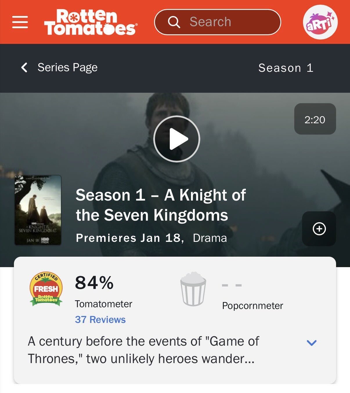 6. A Knight of the Seven Kingdoms Season 1 – 84%