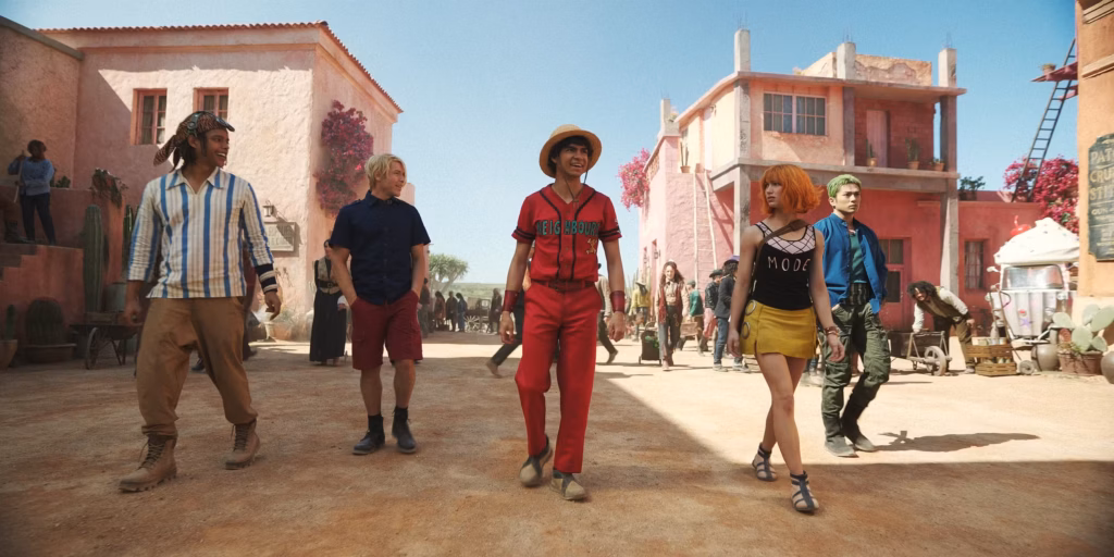 Οι νέες εικόνες από το Whiskey Peak δείχνουν τον Luffy, τον Zoro, τη Nami, τον Sanji και τον Usopp να εξερευνούν την πόλη, φορώντας τα νέα τους ρούχα.