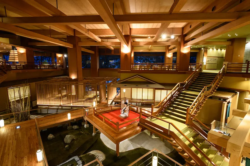 Στο Ookawaso, οι επισκέπτες μπορούν να βιώσουν έναν παρόμοιο εντυπωσιακό χώρο, χωρίς φυσικά τον κίνδυνο των μάχων, παρακολουθώντας ζωντανές παραστάσεις σαμισέν πάνω στην “floating stage”. Αυτή η παραδοσιακή τριχορδη κιθάρα προσφέρει μια μοναδική ατμόσφαιρα, που συνδυάζει την ομορφιά της ιαπωνικής μουσικής με την αίσθηση ότι βρίσκεσαι μέσα σε ένα σκηνικό από το Demon Slayer. Η συγκεκριμένη σκηνή αποτελεί σημείο αναφοράς για τους φανς, καθώς η αισθητική της παραπέμπει άμεσα στις πλωτές σκάλες και τα επίπεδα του κάστρου του Muzan.