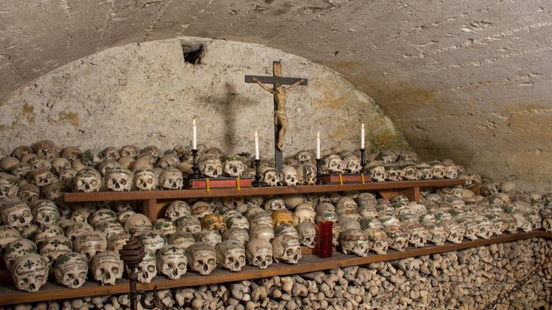 Και τότε υπάρχει το Bone House, το Σπίτι των Οστών, ίσως το πιο ανατριχιαστικό αξιοθέατο της Ευρώπης. Η ιστορία του ξεκινά τον 12ο αιώνα, όταν το νεκροταφείο του χωριού ήταν πολύ μικρό για να χωρέσει τους νεκρούς από έναν φονικό λοιμό. Η αποτέφρωση ήταν απαγορευμένη, και οι κάτοικοι συμφώνησαν στην πρόωρη εκταφή των νεκρών. Τα οστά των νεκρών δεν είχαν πού να συγκεντρωθούν, εκτός από τα κρανία.